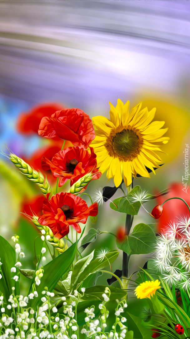 Edytor tapety: Słonecznik i maki