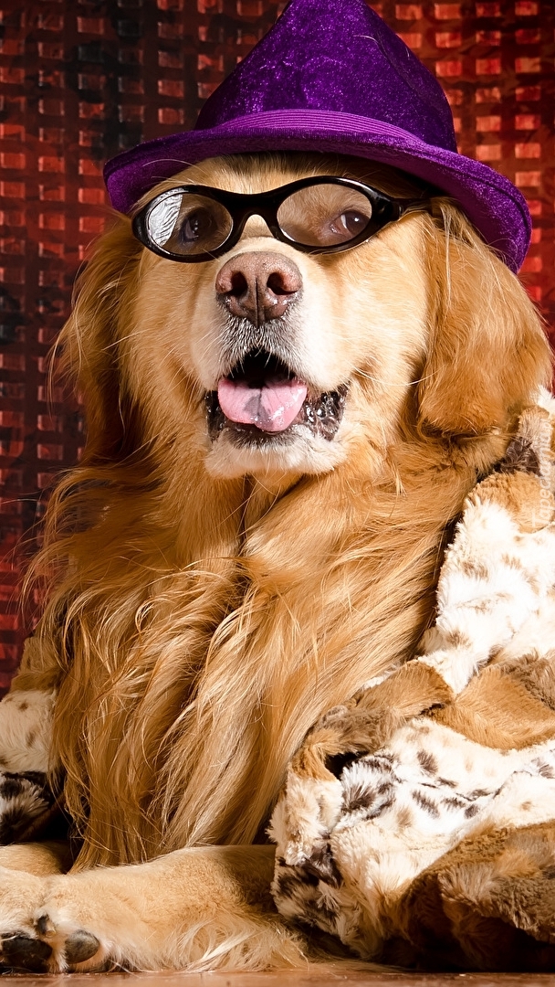 Edytor tapety: Golden retriever w kapeluszu