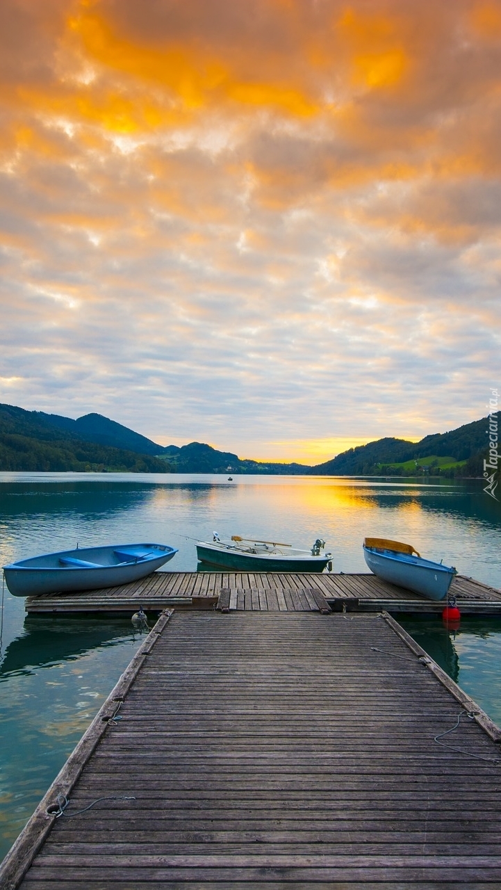 Edytor tapety: Łódki na pomoście wczesnym rankiem