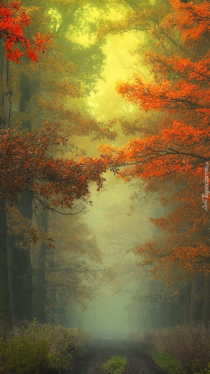 Edytor tapety: Droga we mgle w jesiennym lesie
