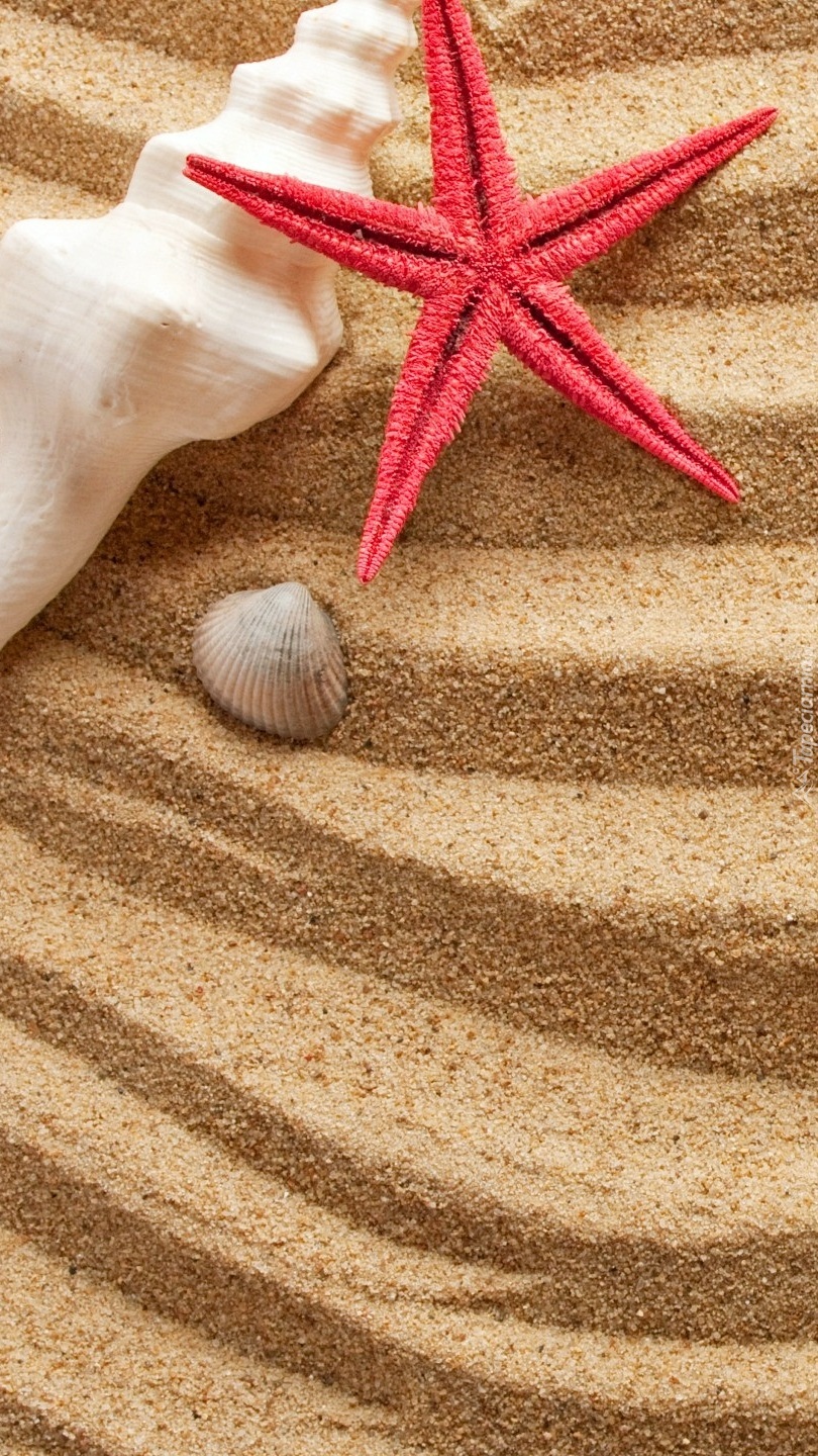 Edytor tapety: Rozgwiazda z muszelkami na piasku