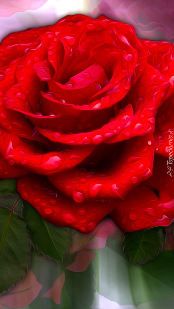 Edytor tapety: Czerwona róża w kroplach
