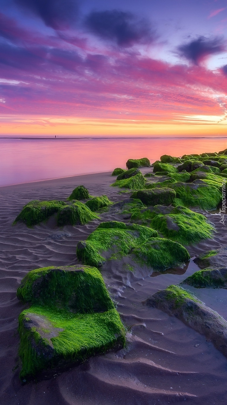 Edytor tapety: Omszałe kamienie na brzegu morza
