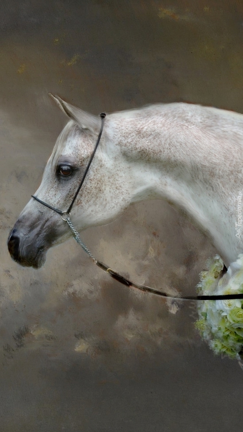 Edytor tapety: Biały koń czystej krwi arabskiej