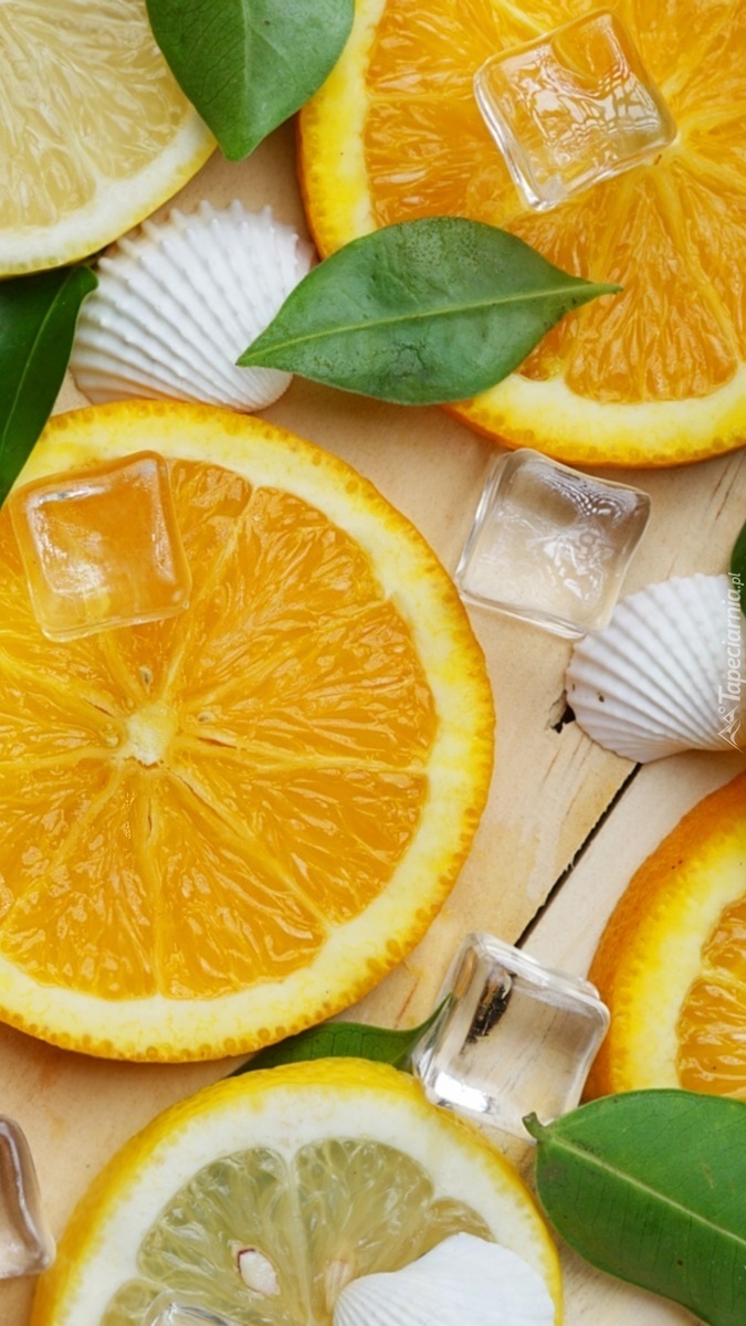 Edytor tapety: Plastry pomarańczy z kostkami lodu