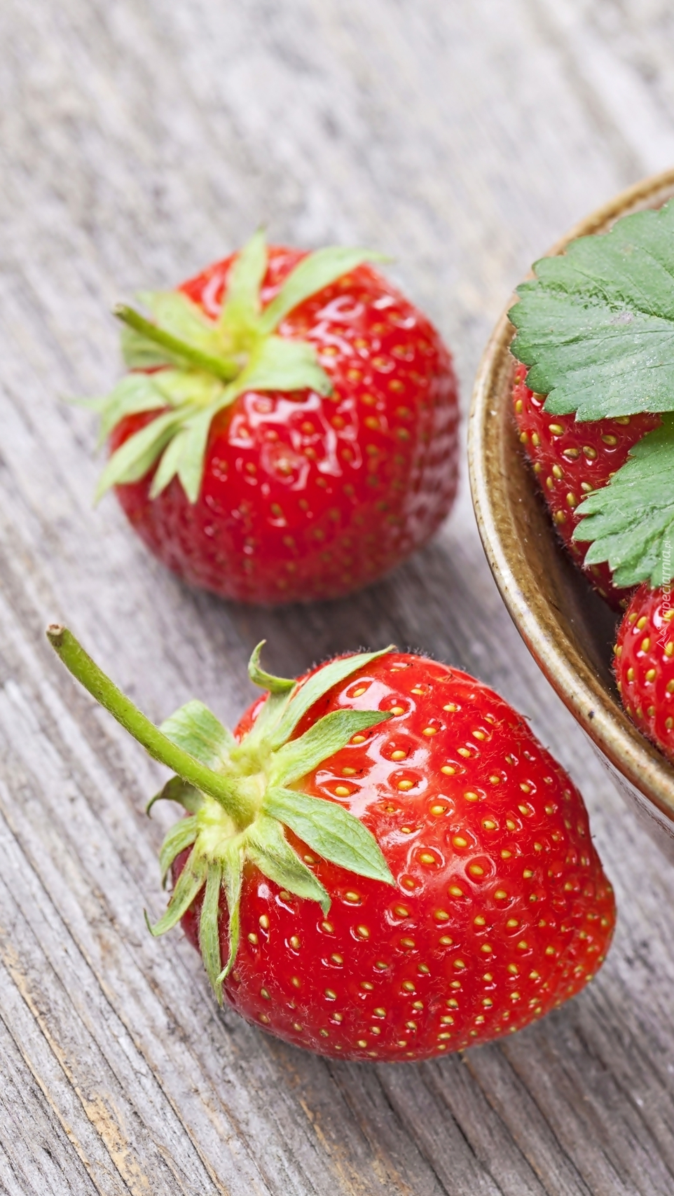 Edytor tapety: Dwie truskawki obok miski