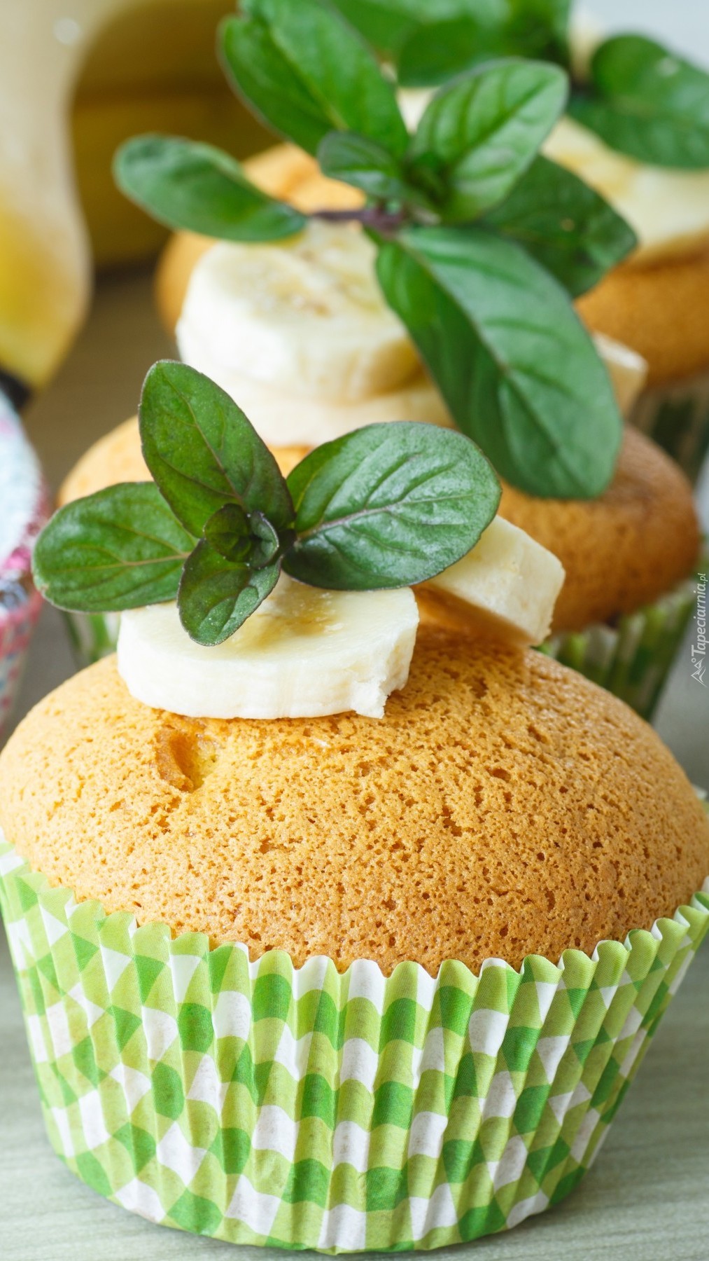 Edytor tapety: Babeczki z zielonymi listkami