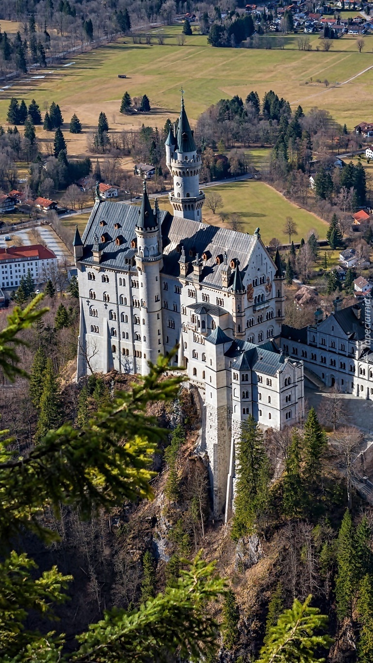 Edytor tapety: Zamek Neuschwanstein z lotu ptaka