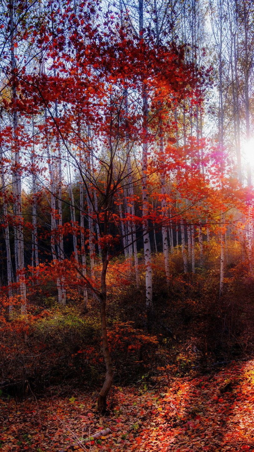 Edytor tapety: Brzozowy las jesienią