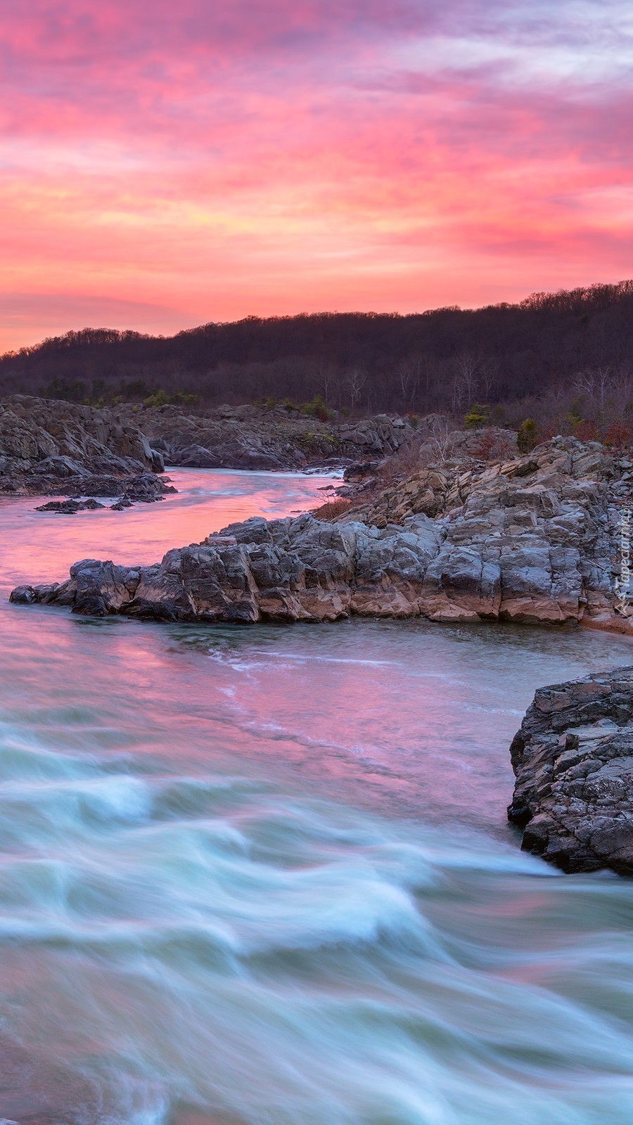 Edytor tapety: Rzeka płynąca pomiędzy skałami