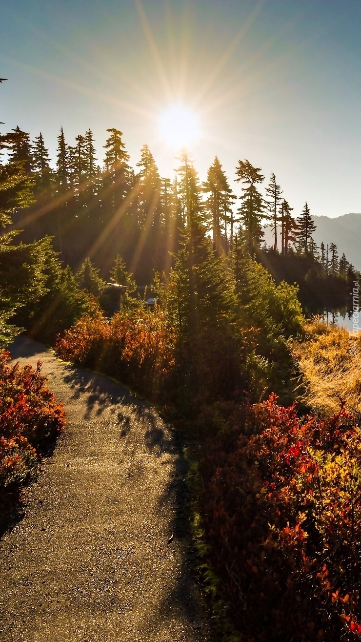 Edytor tapety: Promienie słońca nad drzewami