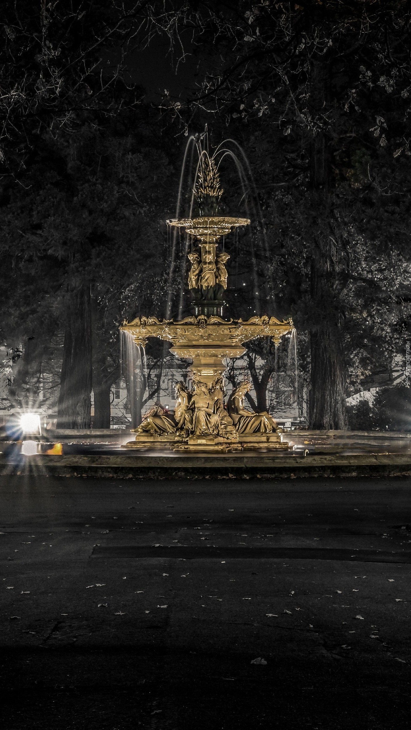Edytor tapety: Fontanna wśród drzew