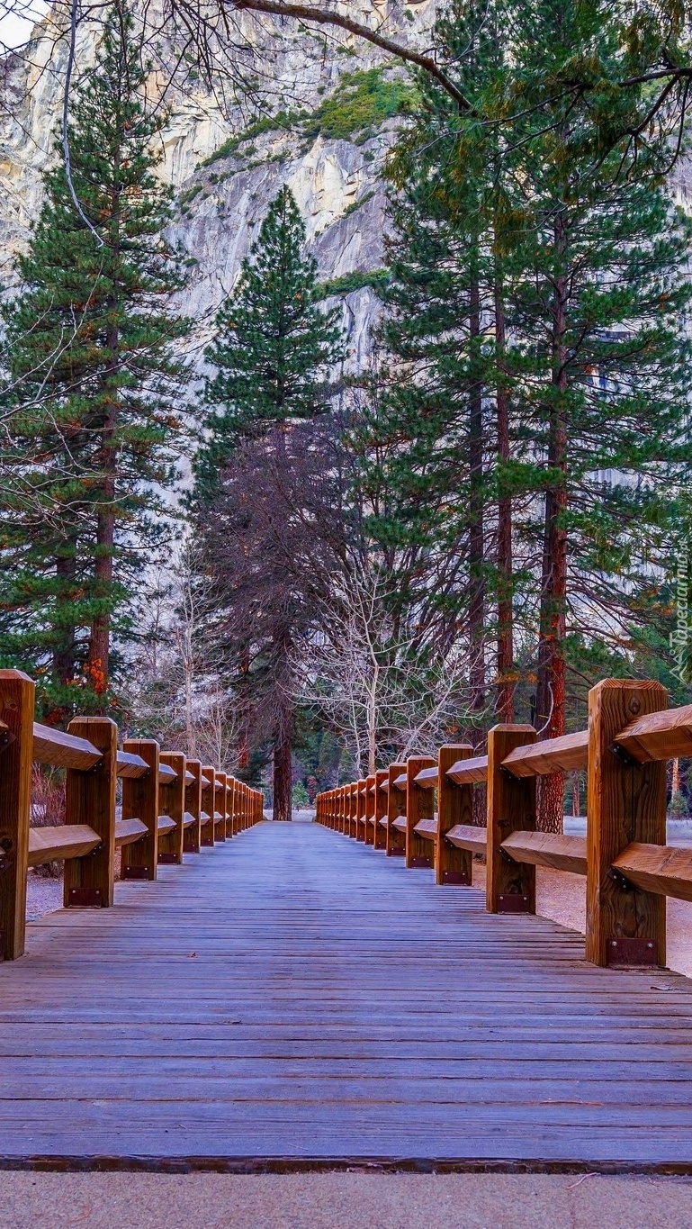Edytor tapety: Drzewa nad drewnianym mostem