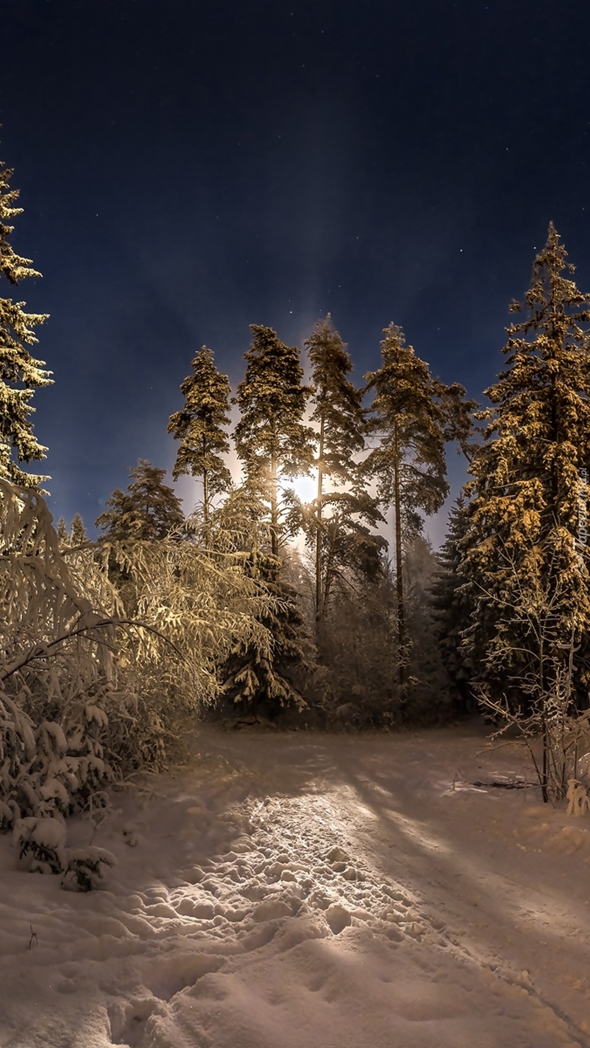 Edytor tapety: Zimowy las nocą
