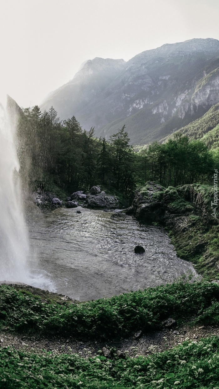 Edytor tapety: Górski wodospad we mgle