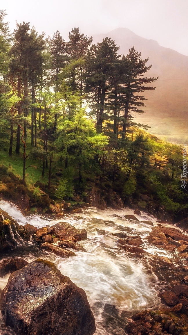 Edytor tapety: Drzewa nad kamienistą rzeką