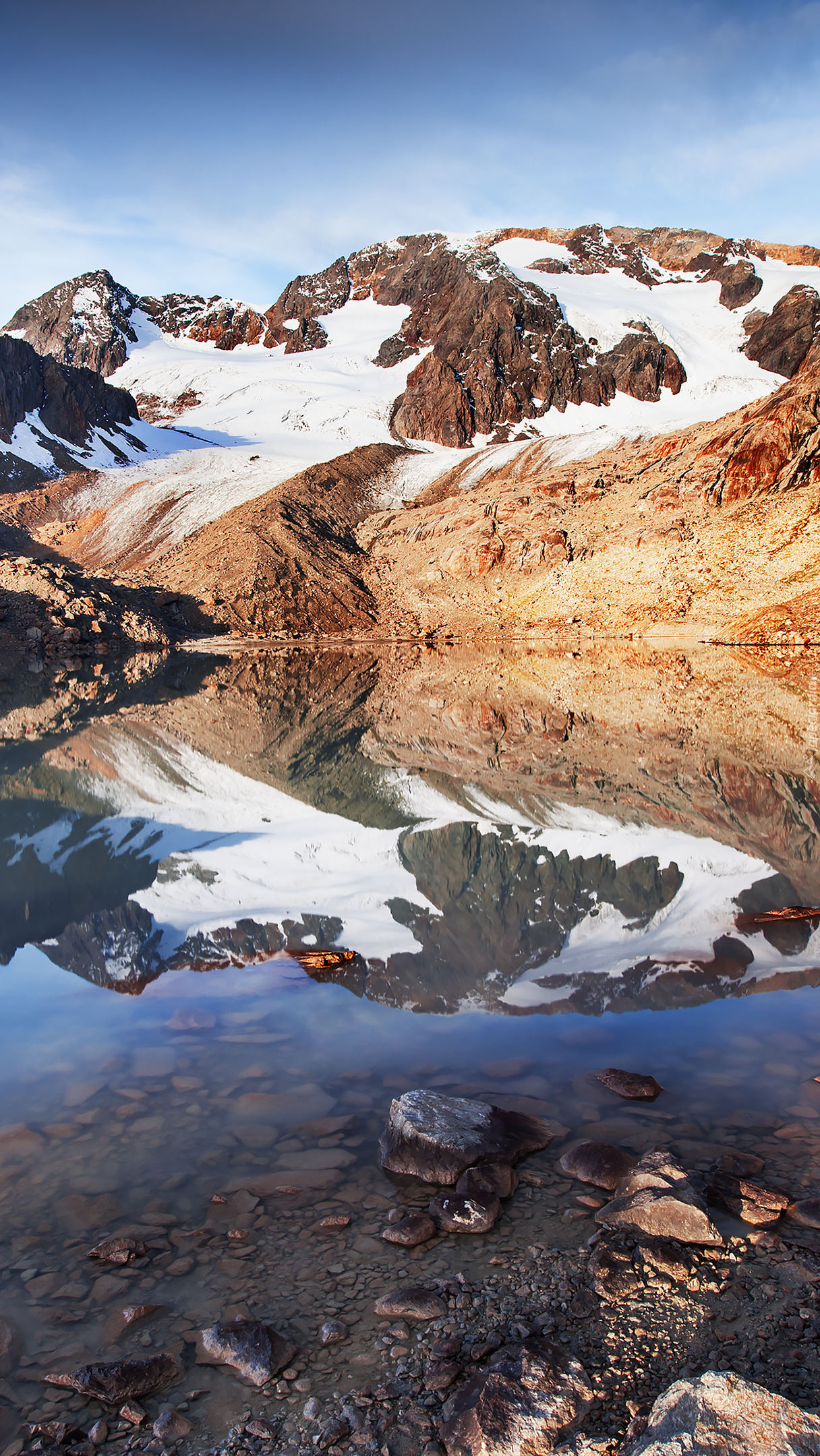 Edytor tapety: Odbicie ośnieżonych gór w jeziorze