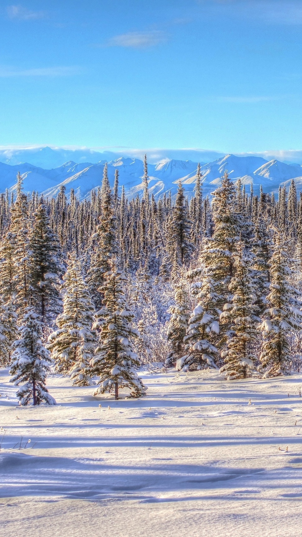Edytor tapety: Ośnieżone świerki w słońcu
