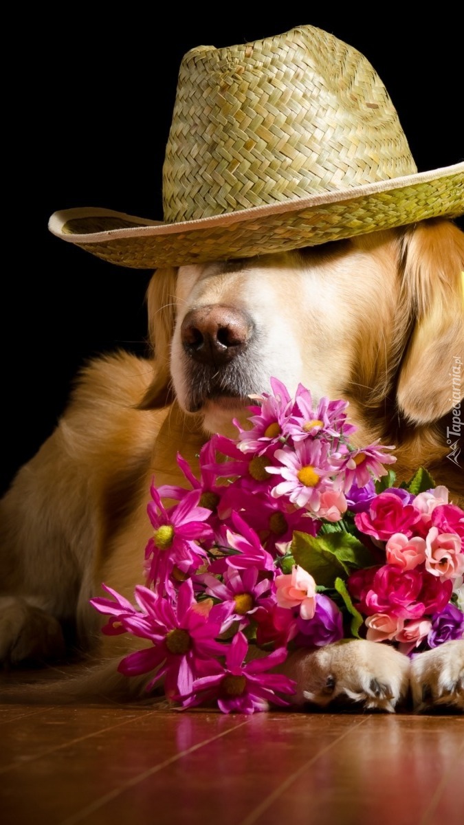 Edytor tapety: Golden retriever w kapeluszu