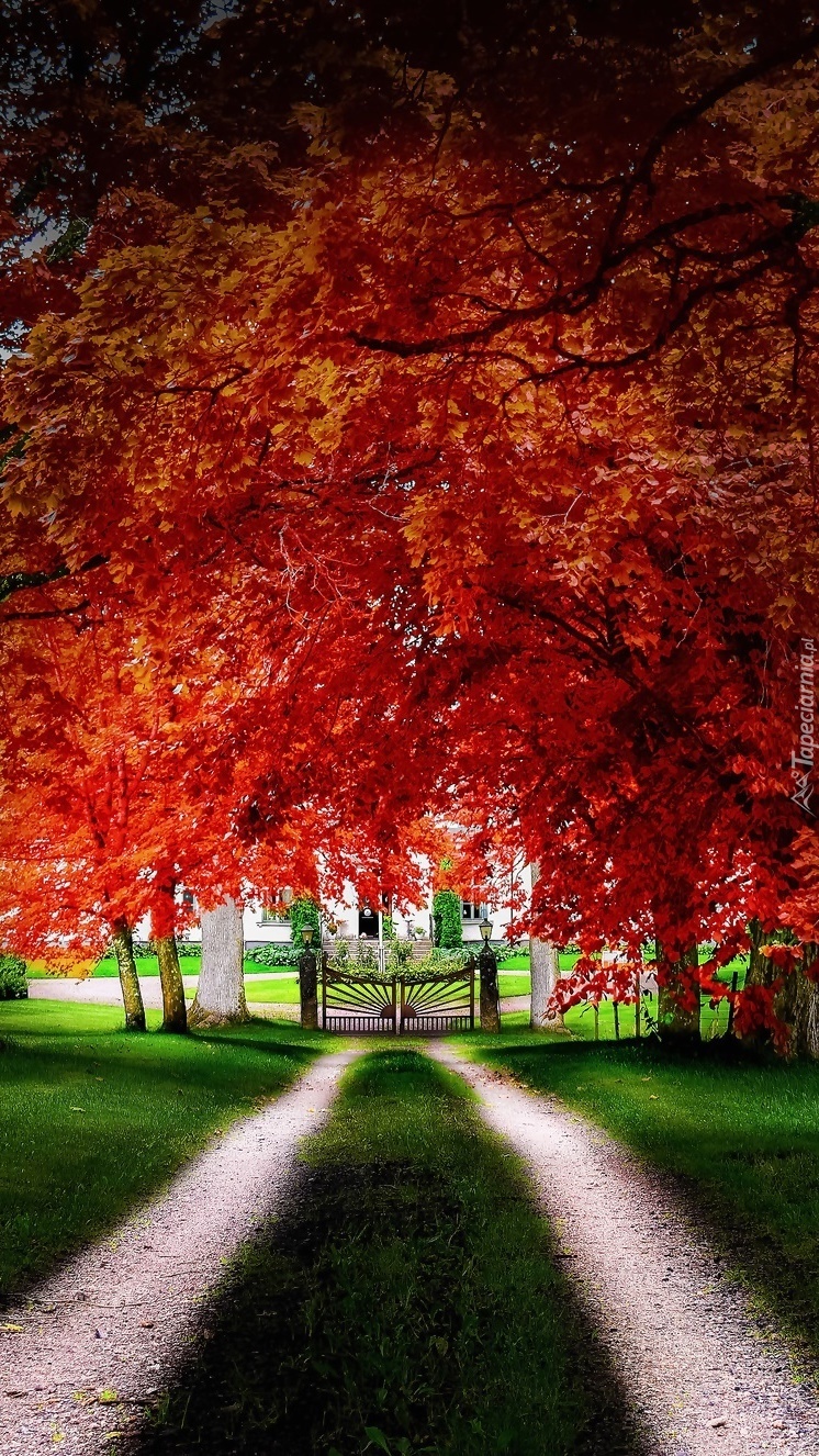 Edytor tapety: Brama pod czerwonymi drzewami