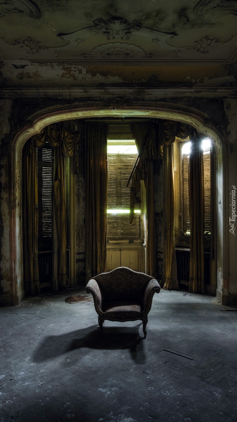Edytor tapety: Fotel w zaniedbanym pomieszczeniu