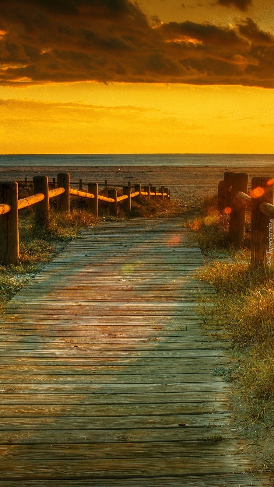 Edytor tapety: Pomost w blasku zachodzącego słońca