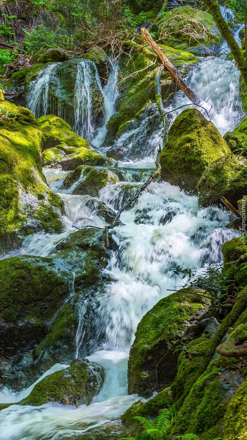 Edytor tapety: Omszałe kamienie w rwącym potoku