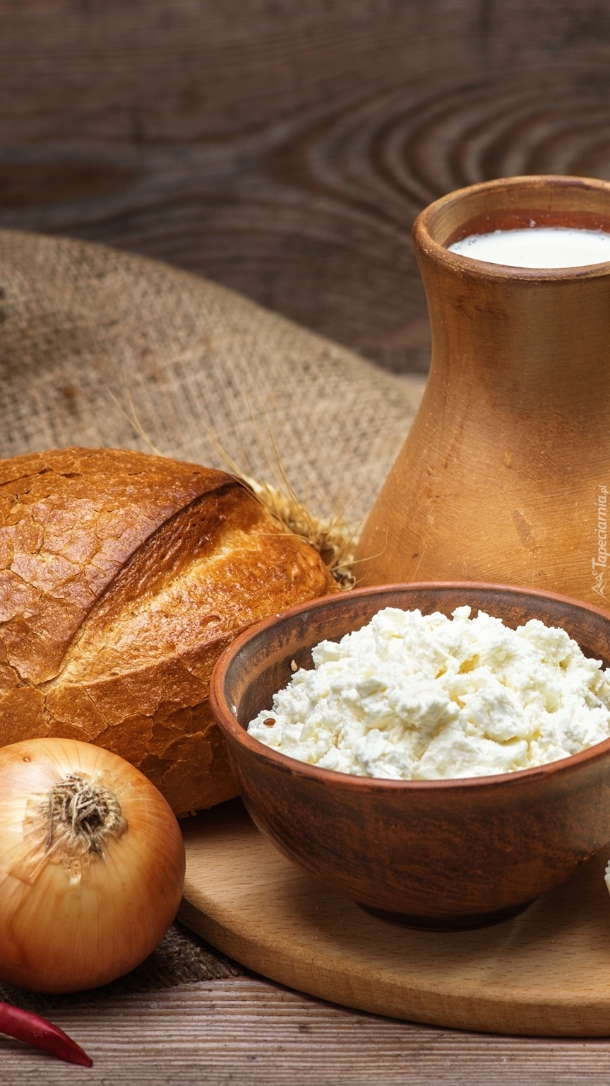 Edytor tapety: Nabiał z pieczywem na deskach