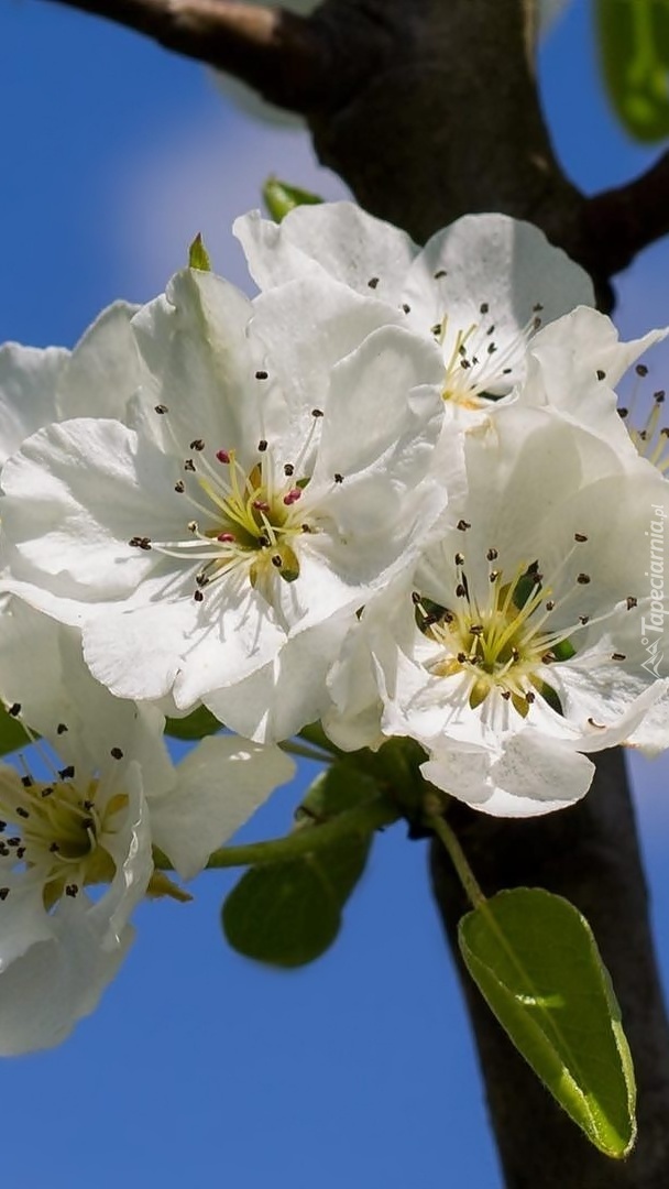 Edytor tapety: Białe kwiaty drzewa owocowego