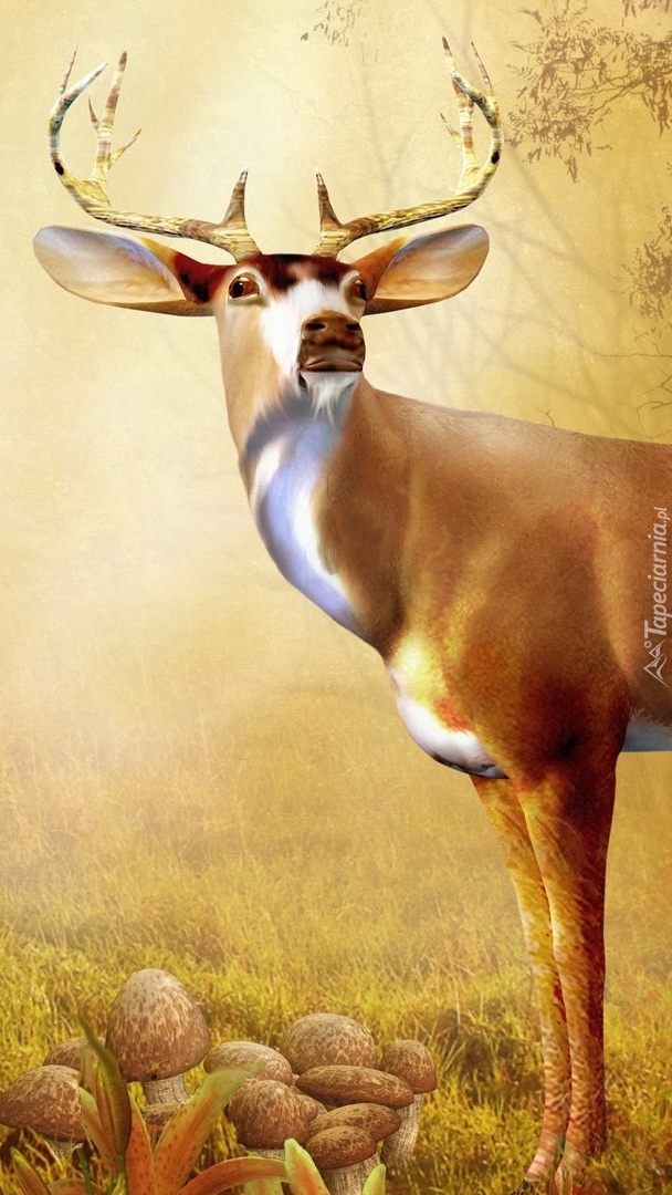 Edytor tapety: Jeleń na grzybobraniu w lesie