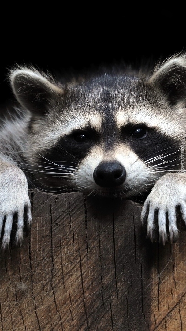 Edytor tapety: Szop wyglądający z dziupli