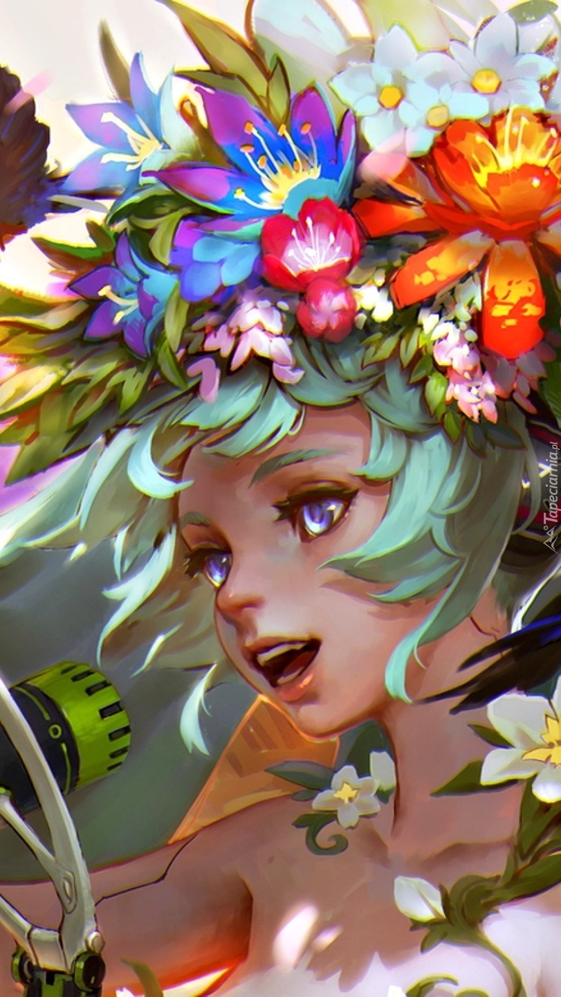 Edytor tapety: Dziewczyna z kwiatami na głowie