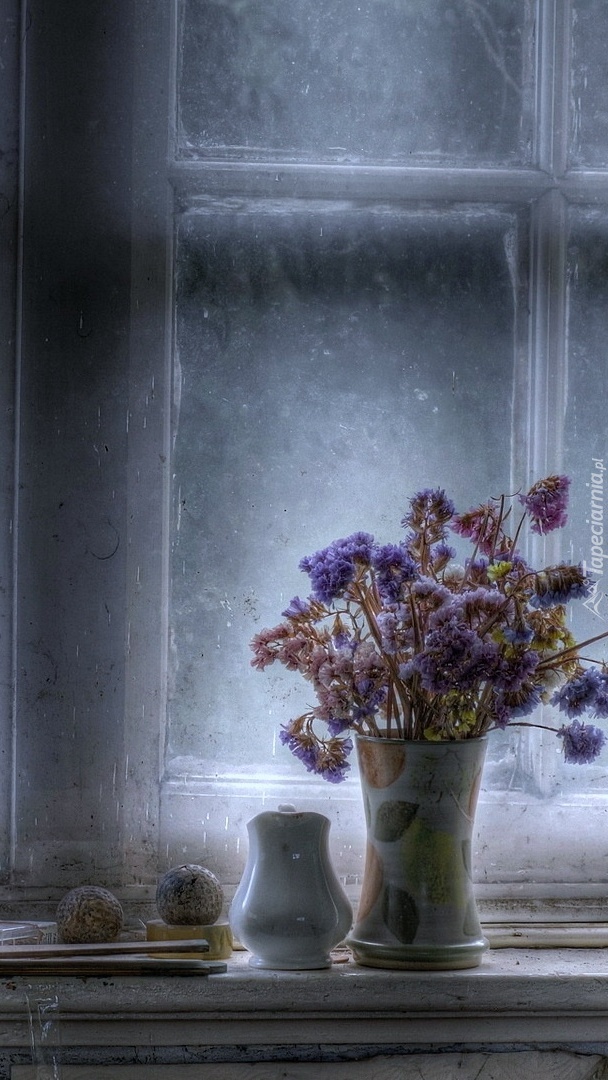 Edytor tapety: Bukiet kwiatów w oknie