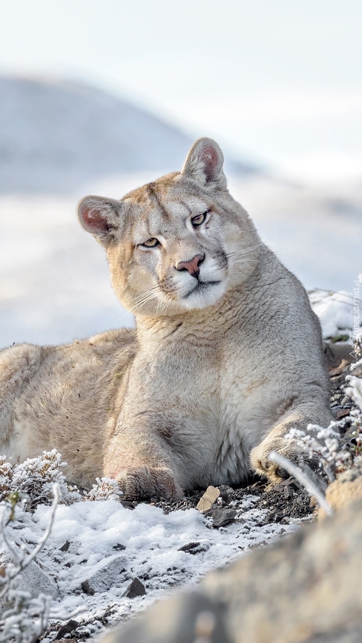 Edytor tapety: Puma leżąca na śniegu