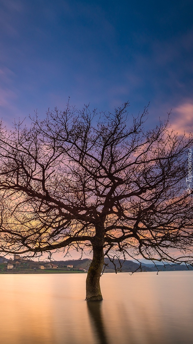 Edytor tapety: Drzewo na jeziorze