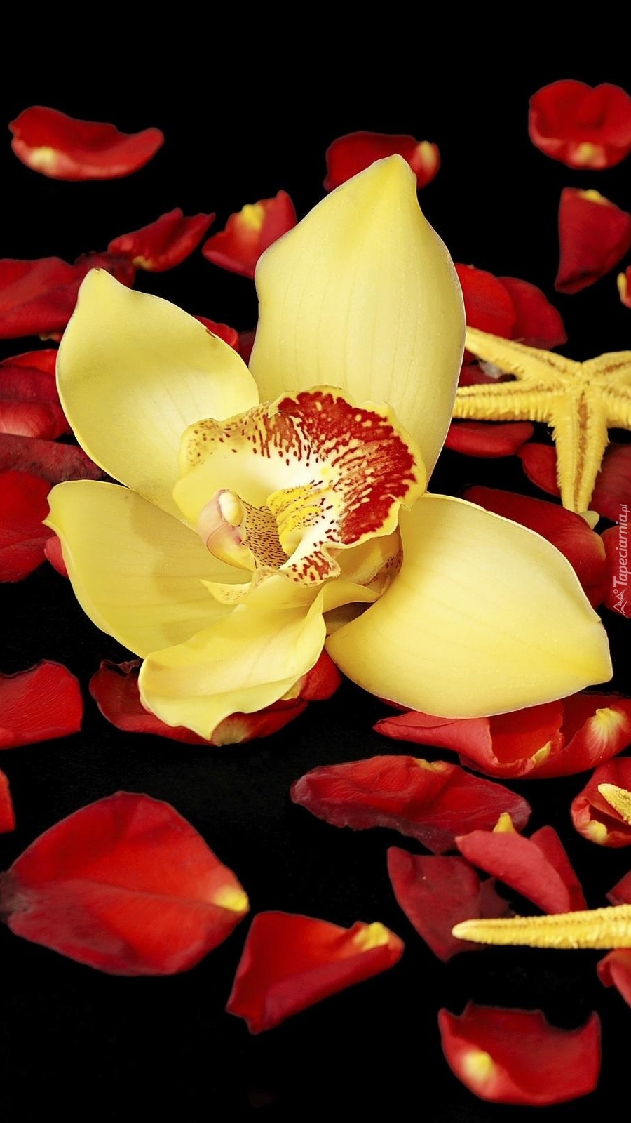 Edytor tapety: Kwiat orchidei na płatkach róż