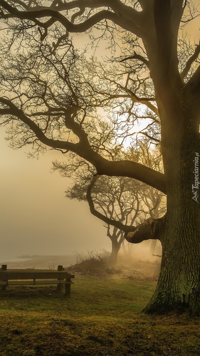 Edytor tapety: Ławeczka pod bezlistnym drzewem