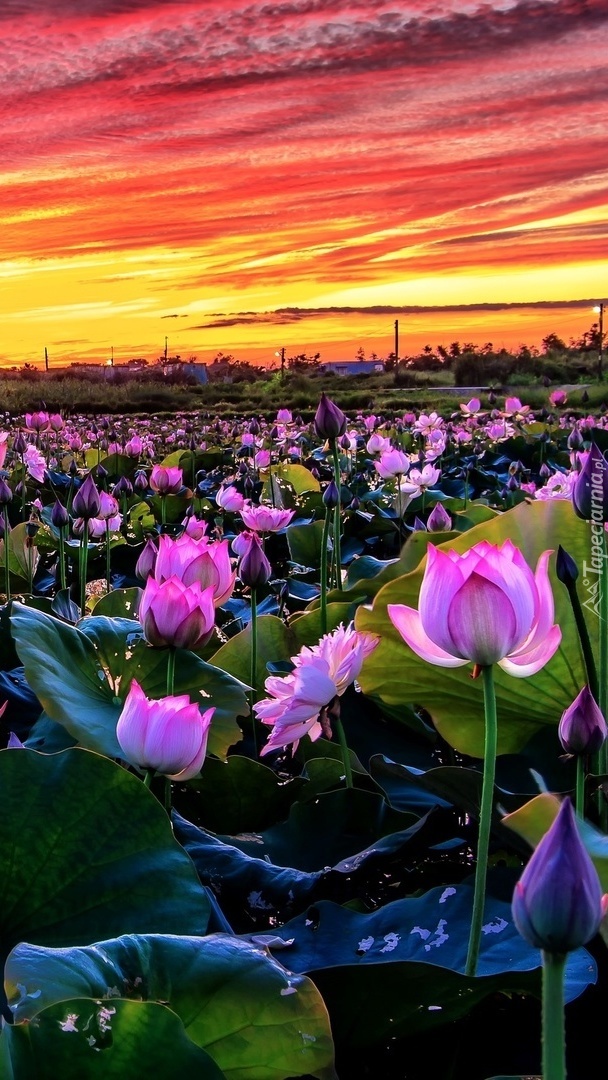 Edytor tapety: Kolorowe niebo nad plantacją lotosów