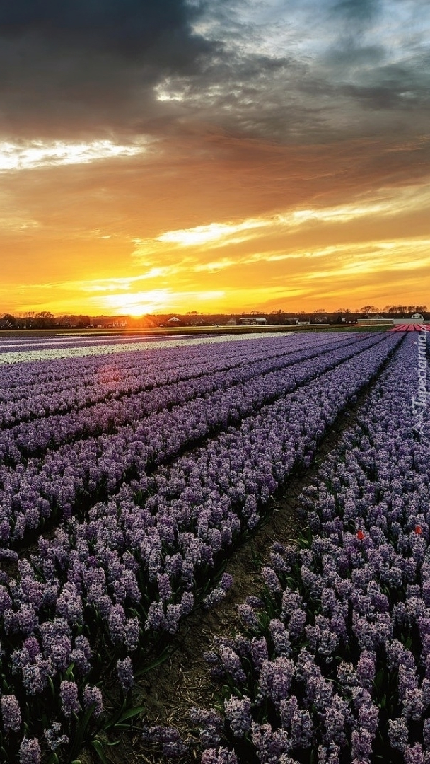 Edytor tapety: Zachód słońca nad polem hiacyntów
