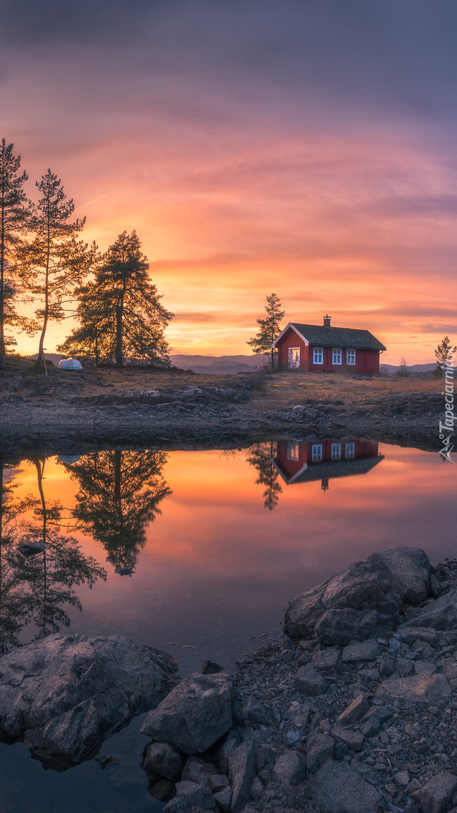 Edytor tapety: Dom nad jeziorem Vaeleren