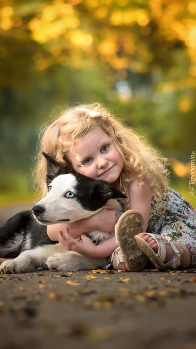 Edytor tapety: Dziewczynka przytulająca pieska