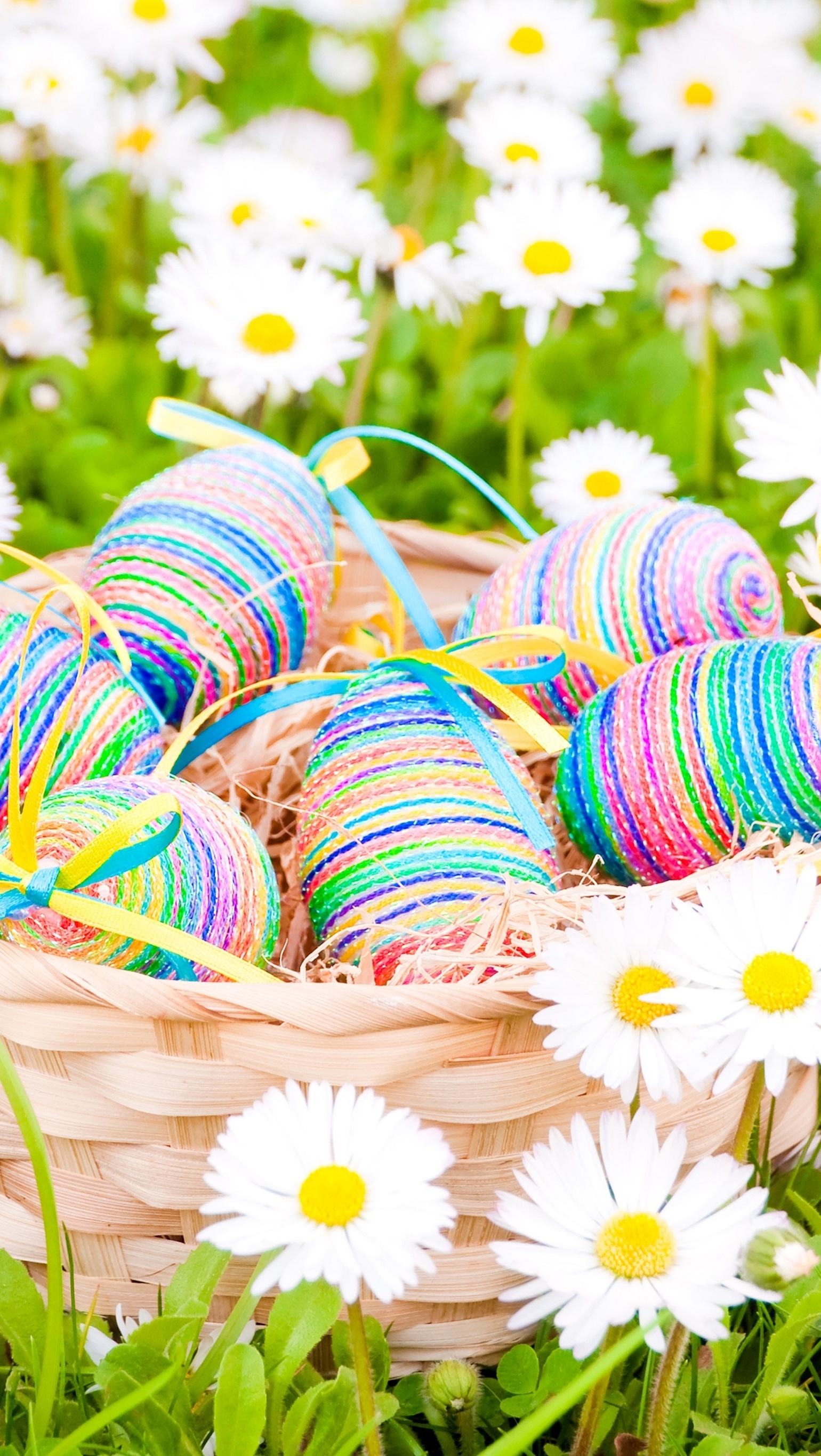 Edytor tapety: Koszyk pisanek w stokrotkach