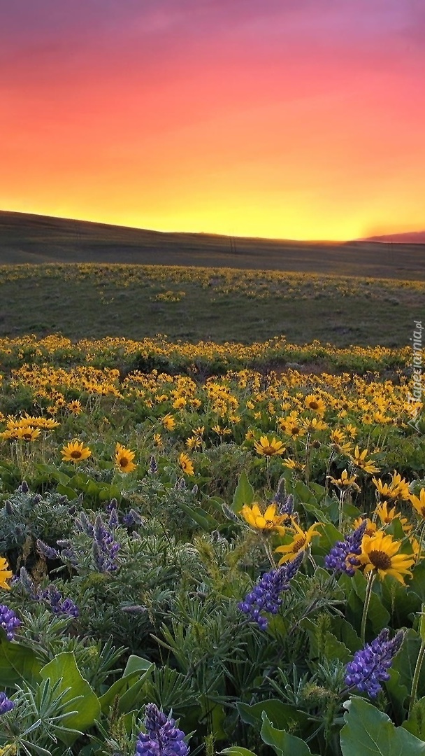 Edytor tapety: Słoneczniki na łące