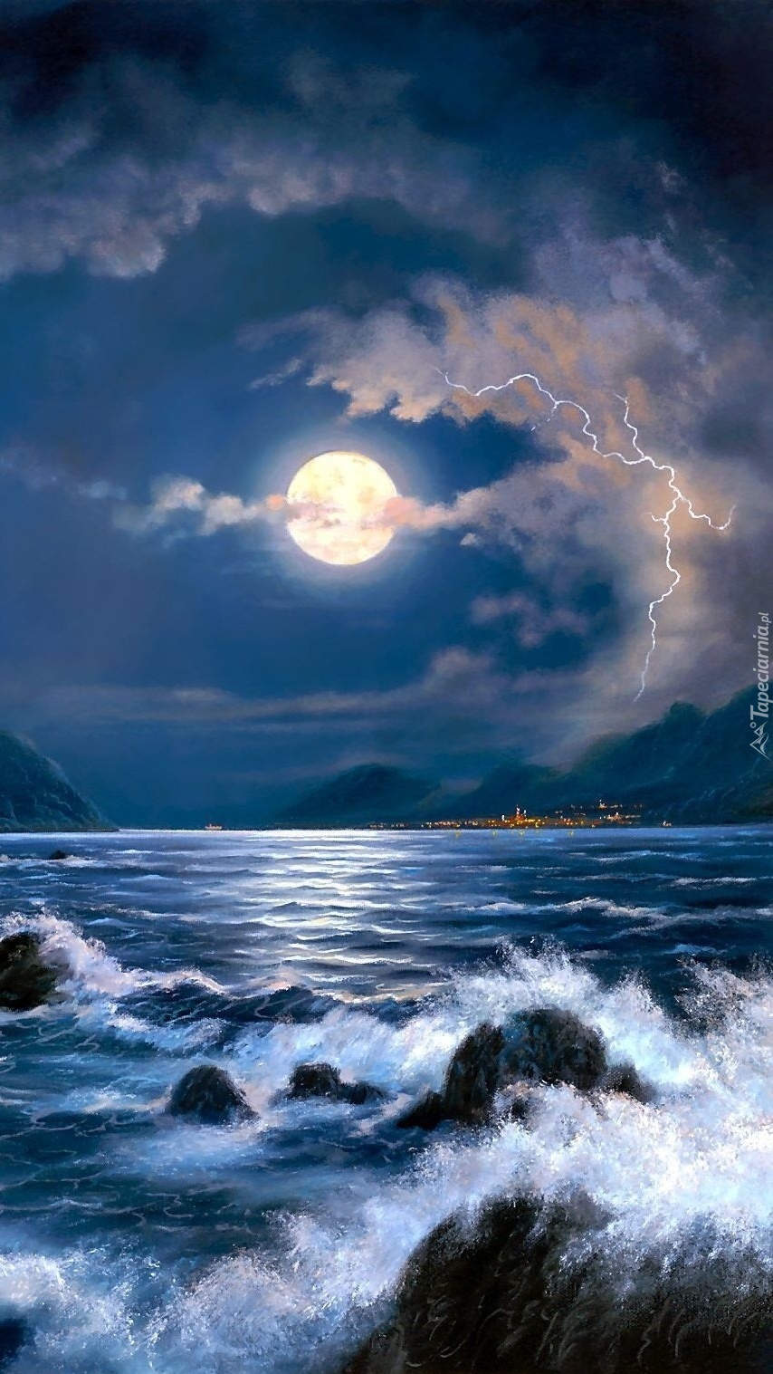 Edytor tapety: Pełnia księżyca nad morzem