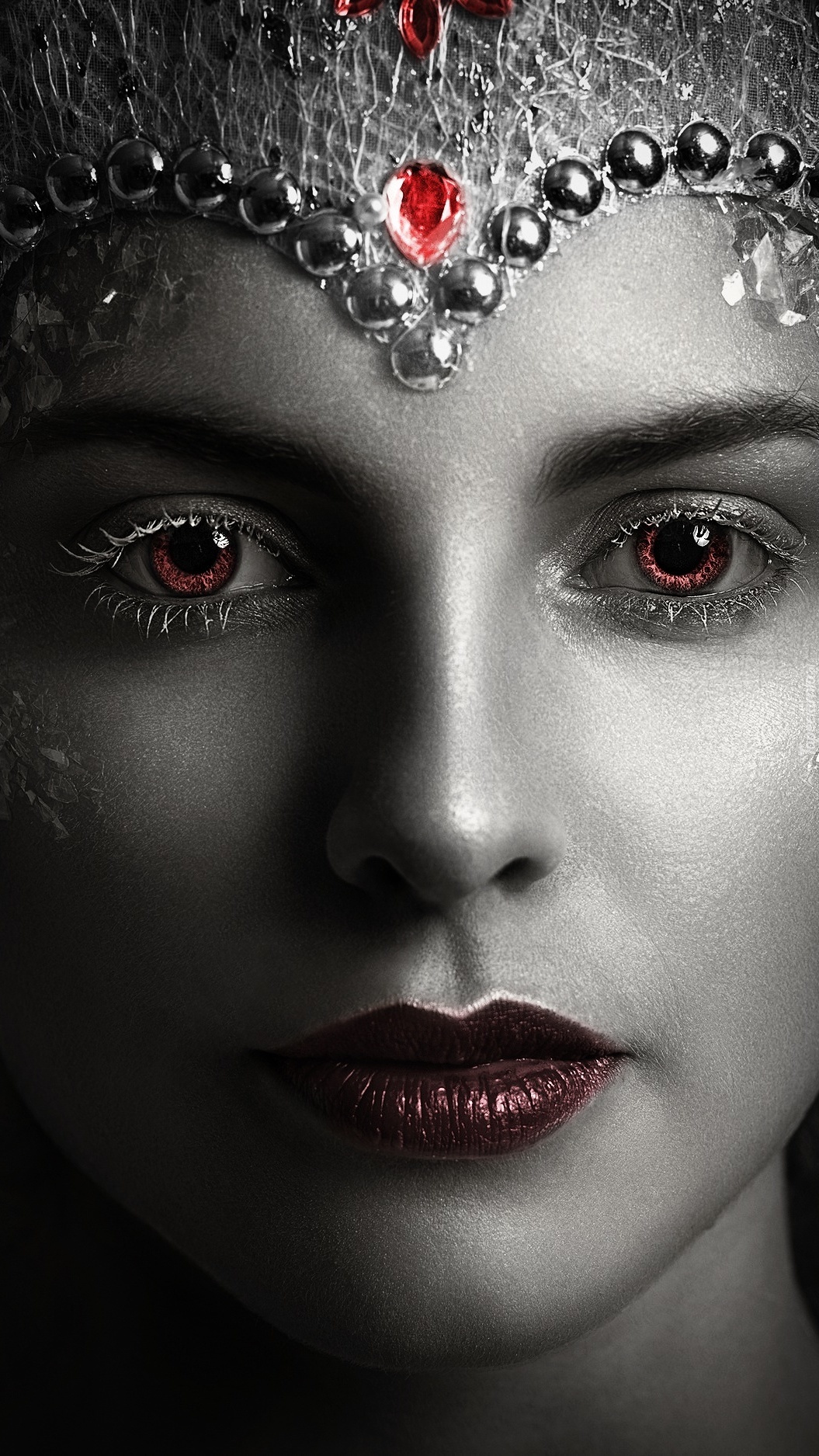 Edytor tapety: Kobieta o czerwonych oczach i ustach