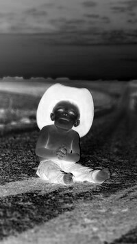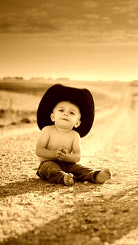 Edytor tapety: Chłopiec w kapeluszu na drodze