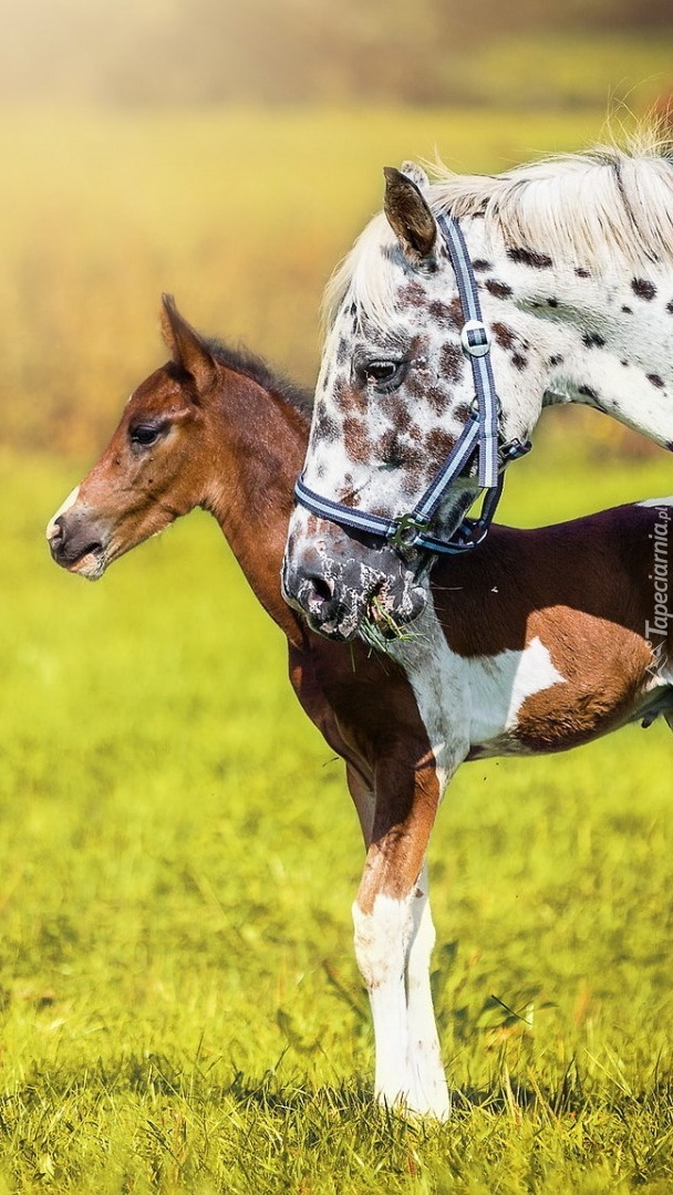 Edytor tapety: Źrebak z mamą na trawie