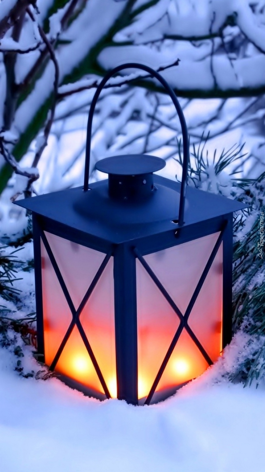 Edytor tapety: Lampion w śniegu