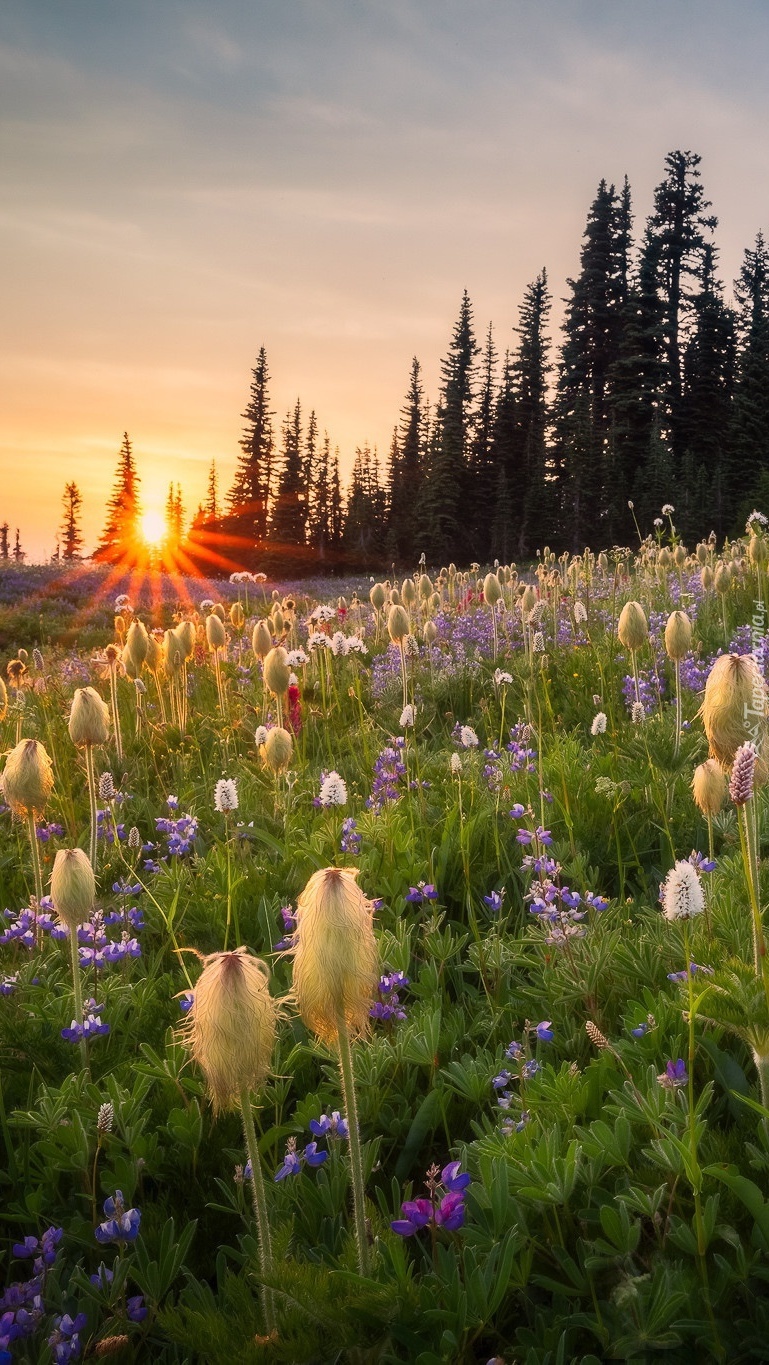 Edytor tapety: Polne kwiaty w promieniach wschodzącego słońca