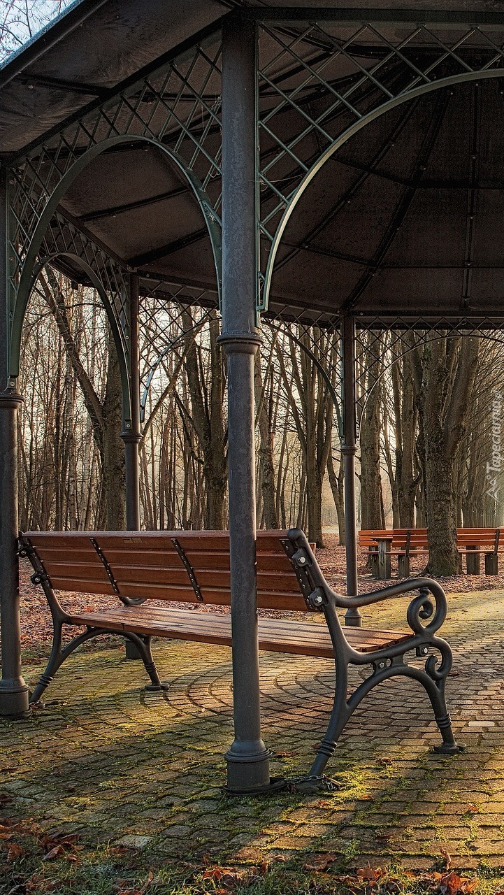 Edytor tapety: Altana z ławeczką w parku